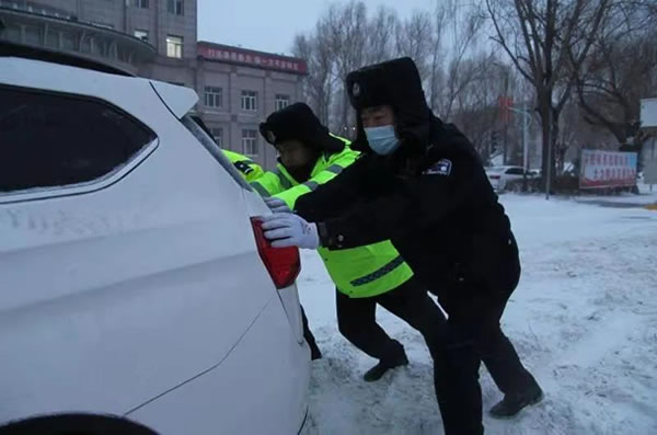 | 11月19日,肇東市普降大雪,且風力較大,形成風吹雪天氣,降雪持續(xù)時間長,積雪深度厚,嚴重影響群眾出行和車輛通行。為保安全,肇東交警大隊以雪為令,以路為家,堅守... |