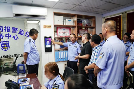 2019年8月1日肇東市公安局長張國輝同志一行參觀騰達安泰保安服務有限公司,對騰達公司110聯網報警平臺系統運營,物聯網安防技術應用,智慧社區智能門禁人臉識別系...
