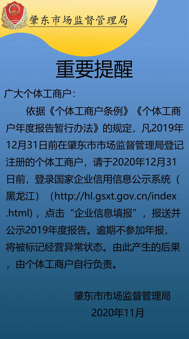 未參加年報,有哪些嚴重后果?請看肇東市市場監督管理局的重要提示: