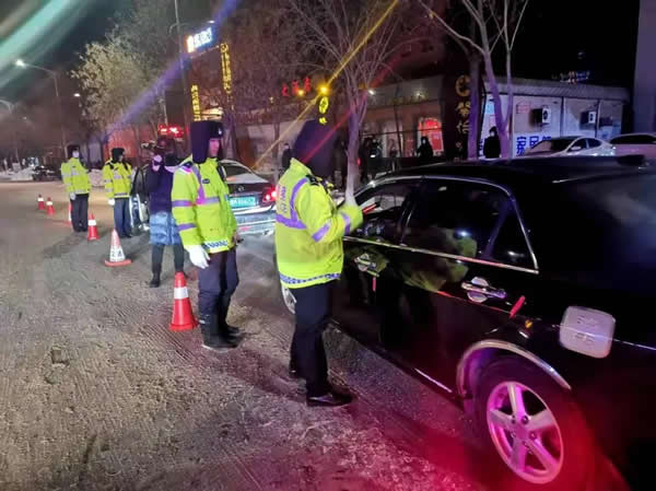由于前一天全市普降大雪,道路結冰,酒駕等嚴重交通違法行為極易引發重大道路交通事故,交警大隊針對惡劣天氣的實際情況,采取定點設卡檢查和機動巡查相結合的勤務模式,將查處范圍向農村擴展覆蓋,巡警大隊和農村派出所通力配合,協同作戰。交警大隊大隊長帶領班子成員到執法一線靠前指揮,全體干警履職盡責,在全市轄區路網布置起了嚴查酒駕違法行為的“天網”。