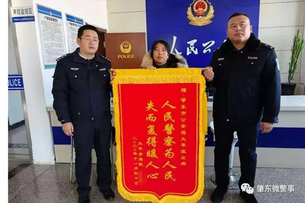 近日,肇東市太平鄉居民左某來到太平派出所,向派出所民警贈送一面印有“人民警察為人民 失而復得暖人心”的錦旗,以表達對民警熱心幫助的感激之情。