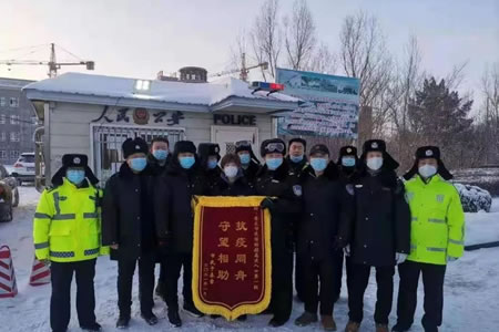 2月1日,哈大高速公路肇東卡口收到于某母子贈送的錦旗,上面印有“抗疫同舟,守望相助”,對卡口執勤民警雪中送炭、熱心幫助的擔當作為表達了感激之情。