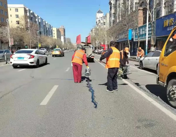 養護人員用吹風機將裂縫中灰塵和雜物吹凈,然后將熱熔后的密封膠注入裂縫中,冷卻后恢復交通。專業技術人員跟班作業,全程指導施工,狠抓清縫、灌注等關鍵環節,做到清縫徹底、灌縫飽滿、路面整潔、線條美觀,把“精細養護”理念貫穿工作始終,確保路面養護質量。