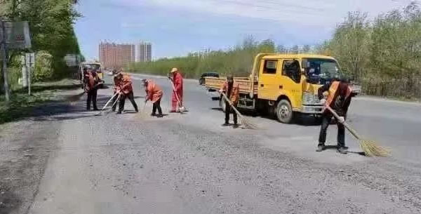 為切實履行公路保護職責,養護人員第一時間趕赴現場,規范設置警示標識后,將石子堆積裝運,清掃干凈后,恢復車輛正常通行。