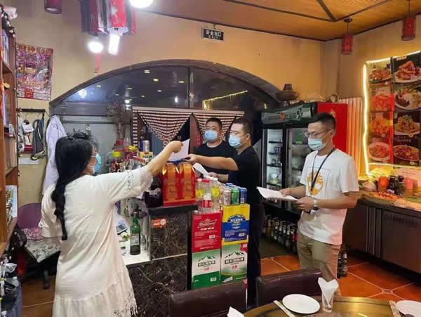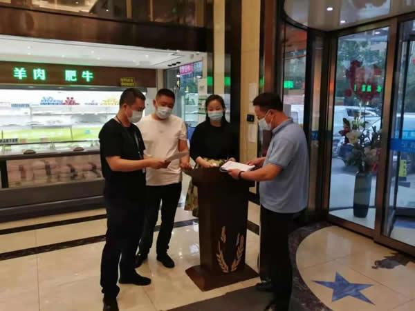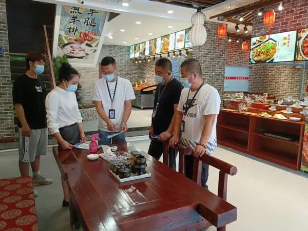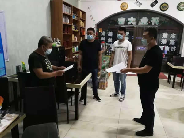 下午13時,我與志州對轄區(qū)2家大型餐飲場所進行了日常巡查,局里負責督導(dǎo)的兩位同志就趕到啦。我們4個人一起投入疫情防控工作中。
