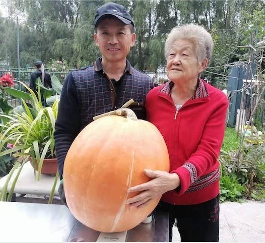 日前,黑龍江省綏化市肇東市80歲高齡的趙瑞琴老人,在自家的小菜園里收獲了一個50斤重的大南瓜。