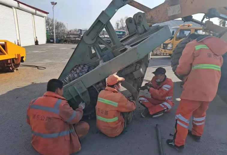 檢修過程中,維修人員重點對裝載機、除雪車、除雪輥、防滑料撒布車進行保養和預防性維修,及時更換潤滑油,緊固零部件,充足電瓶,加足防凍液,保證機械設備處于良好技術狀態,確保在冰雪應急情況下隨調隨用,保障冬季養護應急工作順利開展。