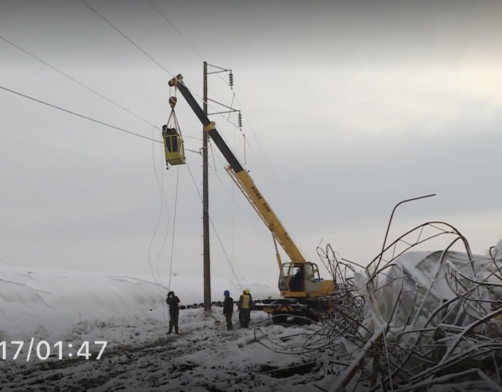 11月9日,在澇洲鎮(zhèn)澇四線電網(wǎng)段,輸電線路受雨雪大風(fēng)惡劣天氣影響,線纜被冰雪壓折,工作人員正在抓緊修復(fù)受損導(dǎo)線、安裝金具和更換絕緣子作業(yè)。