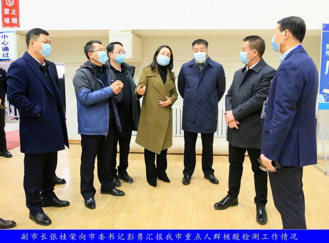 為進一步加強新冠肺炎疫情防控工作,切實保障人民群眾的身體健康和生命安全。2021年12月15日,肇東市市委書記彭勇,市委副書記、市長呂江,市委常委、組織部部長周海波,市委常委、政法委書記田宇,市政府副市長張桂榮,市政府副市長、公安局黨委書記、局長張國輝等一行蒞臨我院對疫情防控及重點人群核酸檢測工作進行現場調研,市委辦、市衛健局、市公安局及市疾控中心負責人陪同調研。