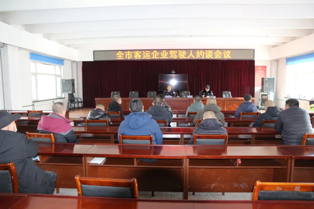 為認(rèn)真貫徹落實(shí)市委、市政府、市交安委、市公安局工作部署,深刻汲取各地近期道路交通事故教訓(xùn),全面預(yù)防和減少道路交通事故,筑牢客運(yùn)車(chē)輛道路交通安全防護(hù)網(wǎng),2月21日,肇東公安交警大隊(duì)組織轄區(qū)重點(diǎn)客運(yùn)企業(yè)負(fù)責(zé)人召開(kāi)約談會(huì),交警大隊(duì)副大隊(duì)長(zhǎng)曲斌參加會(huì)議并提出工作要求,客運(yùn)中隊(duì)中隊(duì)長(zhǎng)葛海泉主持會(huì)議,客運(yùn)企業(yè)負(fù)責(zé)人及部分駕駛員參加會(huì)議。