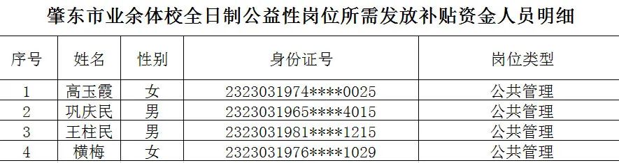 根據(jù)《黑龍江省就業(yè)補助資金管理和使用實施辦法》(黑財規(guī)審[2018]10號)及《黑龍江省公益性崗位開發(fā)管理實施細則》(黑人社規(guī)[2020]3號)等文件精神,結(jié)合我市就業(yè)工作需要,累計開發(fā)全日制公益性崗位429個,需發(fā)放3月份崗位補貼及社保補貼資金1260792.92元。現(xiàn)予以公示(見附件1)。
