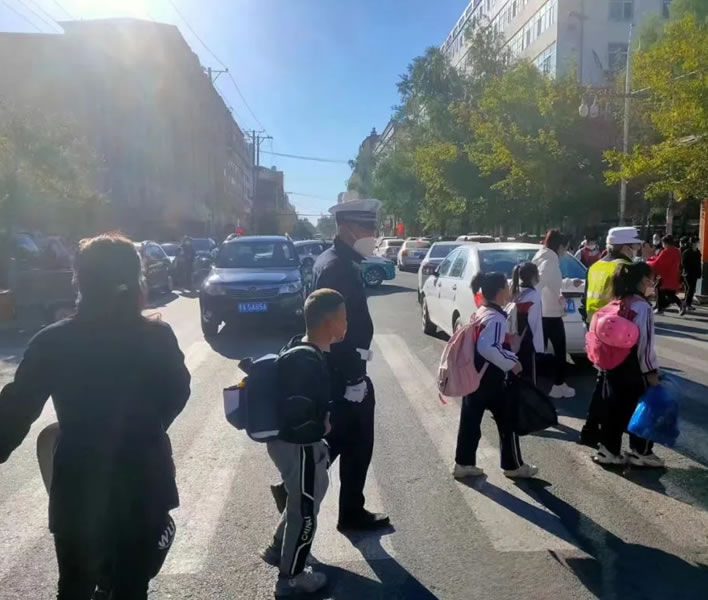 交警大隊不斷優化護學崗“高峰勤務”模式,暖心護學。按照校園周邊道路交通實際狀況,結合學校上下學時間,合理安排勤務,調配警力,護學民警提前到崗,充分發揮職能作用,疏導、分流來往車輛,提示接送學生車輛有序停放、有序通行。在站好護學崗的同時,對廣大學生及家長進行交通安全宣傳教育,詳細講解在上學、放學途中可能遇到的交通安全狀況,呼吁大隊要自覺遵守交通法規,抵制各類交通陋習,安全文明出行。