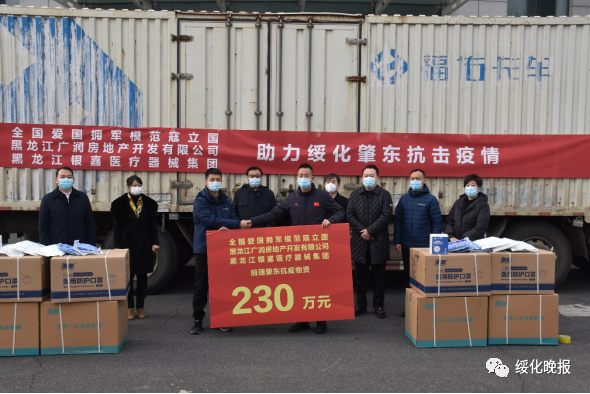 11月24日,正值肇東市抗擊新冠疫情關(guān)鍵時(shí)刻,肇東籍企業(yè)家、立國(guó)集團(tuán)董事局主席寇立國(guó),攜手黑龍江銀嘉醫(yī)療器械集團(tuán)董事長(zhǎng)朱宏偉、黑龍江廣潤(rùn)房地產(chǎn)開發(fā)有限公司董事長(zhǎng)馬麗,向肇東市捐贈(zèng)總價(jià)值230萬元的防疫物資。