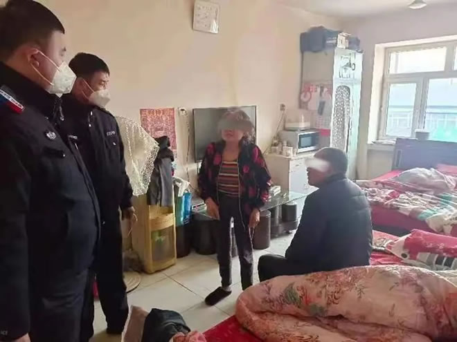 2022年11月28日上午8時(shí),躍進(jìn)派出所巡邏民警在躍進(jìn)鄉(xiāng)全勝村公路旁積雪的壕溝里發(fā)現(xiàn)一名臥倒的老人,巡邏隊(duì)員立即上前查看情況,扶起老人后發(fā)現(xiàn)他神情恍惚、言語(yǔ)混亂,民警一時(shí)無(wú)法問(wèn)清其姓名、住址、家人等基本情況。考慮到氣溫較低,外面又刮著風(fēng),民警將警服披在老人身上后立即將老人扶上車,并將老人帶回所里進(jìn)一步核實(shí)身份,幫助聯(lián)系其家人。到派出所后,民警一邊為老人倒上熱水,一邊與老人通過(guò)聊家常的方式了解信息,在確認(rèn)了老人的家庭住址在昌五鎮(zhèn)后,民警立即驅(qū)車將其送回了家,家屬稱老人因?yàn)榛疾。蛱焱砩献呤В胰苏伊艘灰梗绻皇桥沙鏊木彀l(fā)現(xiàn)后果不堪設(shè)想,家屬對(duì)派出所民警的援手救助表示衷心感謝。