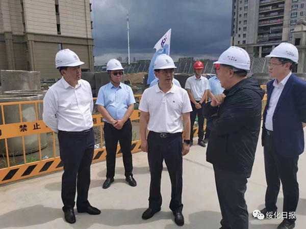 在肇東文旅康養城項目建設現場,塔吊林立、機器轟鳴、人頭攢動,各項施工正在緊張有序進行。孫飚走進建設工地,實地了解項目建設進展情況。