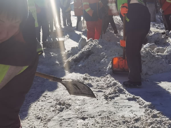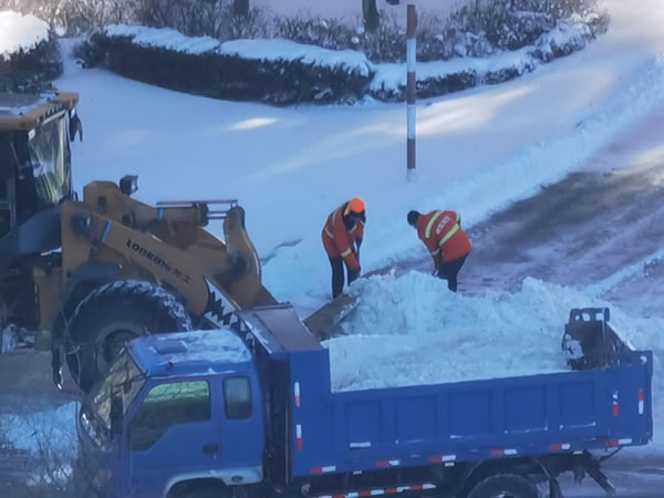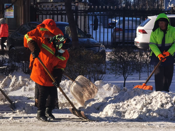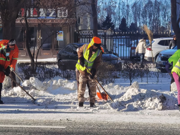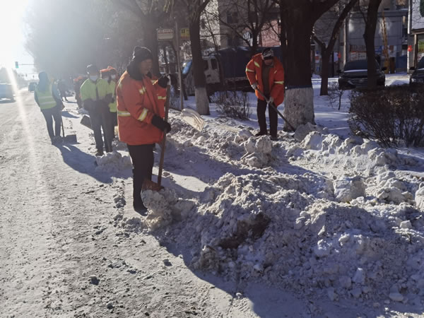 目前城區主干路已經露出了黑色的路面,積雪外運工作正在持續推進中。但由于此次降雪持續時間長,降雪量大,為了有效配合機械化清雪作業,近七百名環衛工人在肇東市主干路進行加班加點作業,保證道路安全暢通。