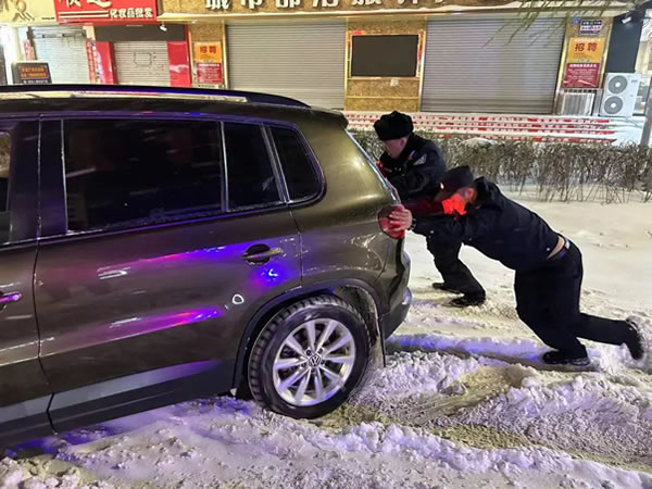 11月6日凌晨開始,大雪、降溫、大風(fēng)等惡劣天氣接種而來,對市區(qū)內(nèi)道路交通造成較大影響。責(zé)任就是擔(dān)當(dāng)!為確保雪天道路暢通和群眾出行安全,肇東公安聞雪而動,浴“雪”奮戰(zhàn),啟動惡劣天氣應(yīng)急預(yù)案,強化對重點路段路口的警力部署,實施定崗指揮疏導(dǎo)交通、巡邏管控路面、安全疏導(dǎo)、應(yīng)急救援及宣傳提示等應(yīng)急舉措,確保雪天道路交通秩序整體安全、有序、暢通。