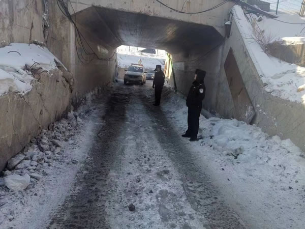2024年1月25日上午,尚家派出所的工作人員正在尚家鎮北橋涵洞進行日常的交通安全隱患排查工作。突然,一輛白色的轎車出現在視線中,它試圖穿越涵洞,但由于冬季路面濕滑,車輛開始失控打滑,情況非常危急。