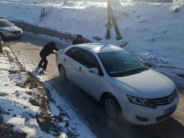 正在這時,輔警孫超和陳星立刻注意到了這一情況。他們迅速放下手中的工作,毫不猶豫地向事發地點沖去。他們深知,每一秒鐘都可能關系到駕駛員的生命安全。到達現場后,孫超和陳星立即采取行動,一邊安撫驚慌失措的駕駛員,一邊用力推車,試圖讓車輛擺脫困境。經過幾次艱難的努力,他們終于使車輛重新獲得了控制,化解了這場危機。在確保車輛安全停放到安全地帶后,兩位輔警才松了一口氣。駕駛員對他們的及時援助表示了深深的感激,他們的舉動不僅挽救了一場可能的交通事故,也溫暖了駕駛員的心。