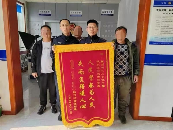 2024年3月,四站派出所接到群眾報警水泵和柴油機丟失。接到報警后,辦案民警迅速開展調查。經過多方工作,縝密偵查,3月25日,在刑偵大隊的大力配合下,四站派出所民警成功將犯罪嫌疑人閆某某和閆某抓獲。3月26日,受害群眾在獲知嫌疑人落網,派出所為他們挽回經濟損失后,將一面書有“人民警察為人民、失而復得暖人心”的錦旗送到了四站派出所民警的手中,感謝民警為其挽回損失。