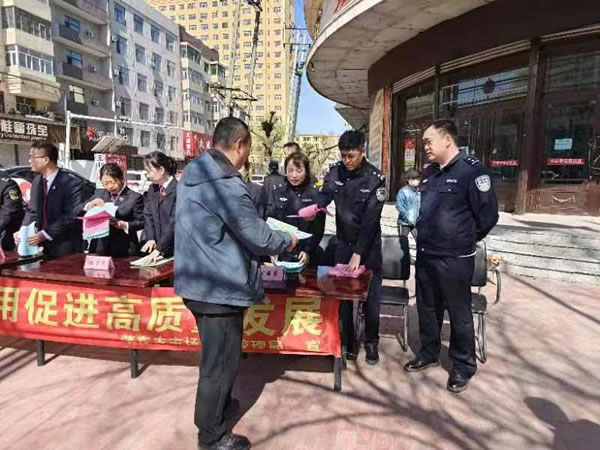 4月26日上午,在第24個“世界知識產權日”到來之際,肇東市公安局食藥環偵大隊聯合市場監督管理局、司法局、人民檢察院在肇東市四道街兄弟家電城門前開展“知識產權轉化應用、促進高質量發展”為主題的普法宣傳活動,進一步提升全民知識產權的保護意識。