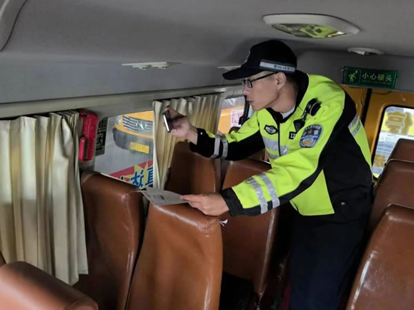 查驗(yàn)過程中,民警對校車標(biāo)志、滅火器、安全帶、安全錘、緊急逃生門、車輛燈光、停車指示牌、車輛年檢及保險(xiǎn)、輪胎的安全性能及校車技術(shù)狀況、安全駕駛情況以及校車安全管理措施落實(shí)情況等方面進(jìn)行安全大檢查。同時(shí)認(rèn)真核對了校車駕駛?cè)说鸟{駛資質(zhì),聽取了校車負(fù)責(zé)人對校車出行方式、安全隱患排查整治、企業(yè)主體責(zé)任落實(shí)情況介紹,并要求校車駕駛?cè)艘杂X遵守交通法規(guī),安全行駛、平安出行。