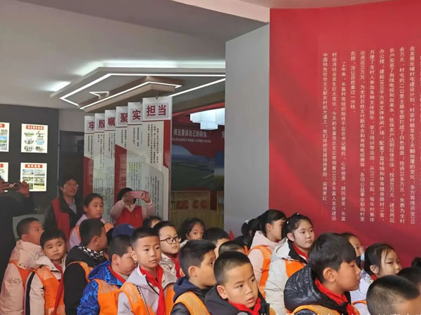 活動當天,孩子們先走進黎明鎮長富村紅色教育展館。沿著總書記視察路線,在講解員帶領下參觀 “長富精神” 等特色板塊,通過老照片、實物與場景復原,聆聽原黨支部書記 37 年深耕現代農業的奮斗故事,在紅色文化中傳承艱苦奮斗精神。