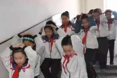 隨著警報聲響起, 地震應急演練在校園內拉開了帷幕,各班同學在班主任和科任教師的組織下,不慌不亂的頭對頭地蹲在課桌底下,手扶桌腿,接著同學們迅速向課桌中間的空位置靠攏,站成3路, 分成2路縱隊快速而有序地分別從教室前后門跑出教室,跑到操場指定地點,各班迅速清點學生數并向校領導匯報情況,歷時1分45秒。