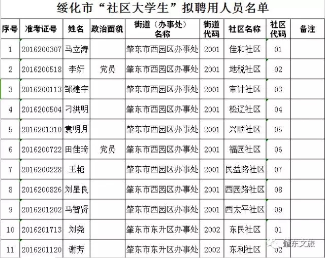 按照綏化市選聘“社區(qū)大學生”考試工作總體安排,經(jīng)過筆試、面試、體檢和考察等程序,我市33名考生為擬聘用人員(1名懷孕考生暫緩聘用),現(xiàn)予以公示,公示期為5個工作日。聯(lián)系電話:0455-7784522。