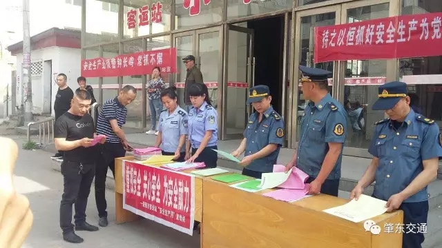 6月16日上午,按照交通運輸局黨委認真落實市委、市政府“安全生產月”和“安全生產龍江行”活動的工作部署,交通運輸局安全辦組織市公路管理處、道路運輸管理站、交通公安執勤室三家執法單位聯合開展“6-16”安全日宣傳活動。本次活動共出動執法宣傳車6臺,執法人員19人,在市區重點部位、人員密集場所、公交車上等懸掛安全標語共52條,在市客運總站門前設立宣傳臺一處,發放宣傳單1370份。