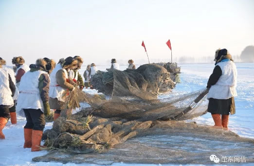 大似海有個古老的蒙古名,叫烏珠古爾泊,意為最南端尖狀湖。大似海曾經是郭爾羅斯先民游牧封地,當時的漁民用魚叉、魚鉤和魚亮子等工具捕魚。勤勞智慧的東北漁民不斷發明創造,逐步演變成今天這種多片連接的巨型冬網,長期實踐活動形成了一整套的冬捕技巧和特有的祭祀風俗,蘊含和散發出古老漁獵文化的非凡魅力。冬捕對于當地的居民來說,不僅僅是捕魚也是一種獨特的生活方式,寄托著他們的歡樂以及對美好生活的向往和希望。