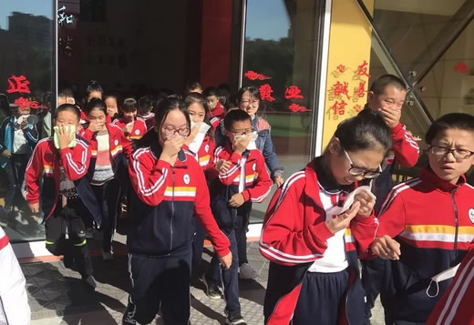 隨著廣播中急促的警報聲響起,演練正式開始,分布在學校多個教學樓的學生在老師的指揮下按照既定的疏散線路,迅速、有序、安全地疏散到安全地帶,5分鐘38秒千名師生成功疏散完畢。