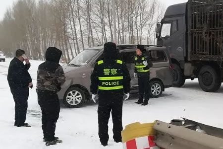 近日,肇東市開發(fā)區(qū)金都養(yǎng)雞場附近因雪天路滑,一輛白色面包車側(cè)翻在路邊。接到報(bào)警后,交警大隊(duì)巡警五中隊(duì)中隊(duì)長栗平泉立即帶領(lǐng)民警趕到現(xiàn)場,發(fā)現(xiàn)車輛駕駛員因驚嚇引起身體不適。現(xiàn)場民警果斷處置,一邊疏導(dǎo)交通,設(shè)置隔離帶,指派專門警力駐守;一邊" />