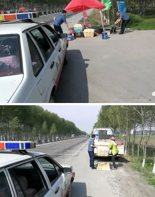 通過執法人員耐心細致的文明執法,攤販們自覺把貨物搬離公路用地范圍,有效保障了公路安全暢通。