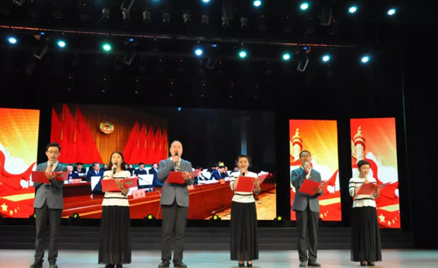 隨后,朗誦會(huì)正式開(kāi)始。一聲聲詞句深情飽滿、一件件歷史蕩氣回腸,朗誦會(huì)在全體市委常委的詩(shī)朗誦《中國(guó)夢(mèng)》中拉開(kāi)帷幕。市委常委們的朗誦時(shí)而激情豪邁、時(shí)而深沉含蓄,字字鏗鏘有力,他們用振奮人心的話語(yǔ)和緬懷革命先烈的詩(shī)詞回顧和謳歌了建黨98周年、新中國(guó)成立70周年來(lái)的滄桑巨變與光輝歷程,又充分展現(xiàn)了立足新時(shí)代下,廣大甜城兒女在市委的堅(jiān)強(qiáng)領(lǐng)導(dǎo)下,邁著堅(jiān)定有力的步伐,向著實(shí)現(xiàn)中華民族偉大復(fù)興的中國(guó)夢(mèng)、兩個(gè)“一百年”奮斗目標(biāo)奮勇前行的使命和擔(dān)當(dāng)。