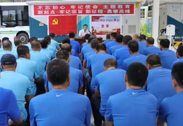 為進一步深入學習貫徹黨的十九大精神和習近平總書記重要講話和重要指示精神,按照市委和市交通運輸黨組的統(tǒng)一部署,公汽公司黨支部在新落成的公交新能源充電站舉辦了“不忘初心 牢記使命”主題教育活動,喜迎建黨98周年,為新中國成立70周年獻禮。公司黨支部書記楊維旭以“新起點—牢記使命 新征程—勇攀高峰”為題,為公司全體黨員及優(yōu)勝員工講了一堂專題黨課。