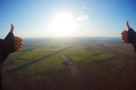 據(jù)了解,俱樂部教練團(tuán)隊(duì)均為有著數(shù)千次跳傘經(jīng)驗(yàn)及擁有國際認(rèn)證的《雙人跳傘教練證書》的專業(yè)跳傘教練組成。可以為各地游客提供雙人高空跳傘體驗(yàn)、單人高空跳傘培訓(xùn)、單人跳傘等多項(xiàng)跳傘服務(wù)。當(dāng)天上午,有十余名毫無跳傘經(jīng)驗(yàn)的游客,乘坐“大棕熊100”型飛機(jī),升至3200米高空后,與教練固定在一起,一躍而下,在經(jīng)歷了35秒左右的自由落體運(yùn)動(dòng)后,傘包順利打開,俯瞰龍江大地美景,然后安全降落在指定地點(diǎn)。
