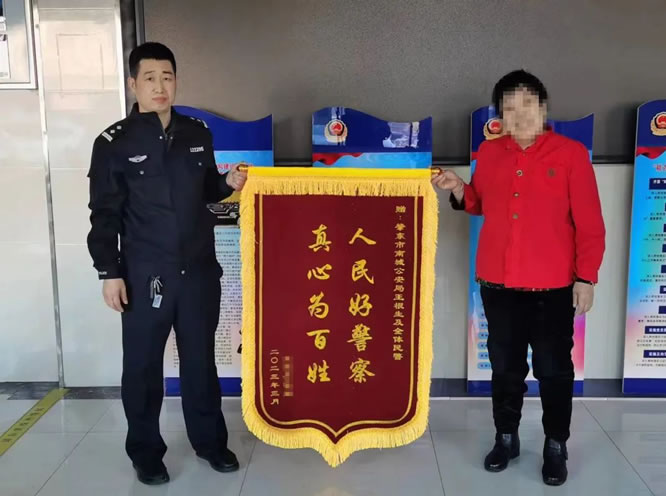 在辦理過程中,民警向家屬表示新身份證制作完成后,第一時間將證件送到群眾家里,王女士一家對民警的熱心服務表示感謝,并將一面寫有“人民好警察、真心為百姓”的錦旗交到南城派出所民警手中。