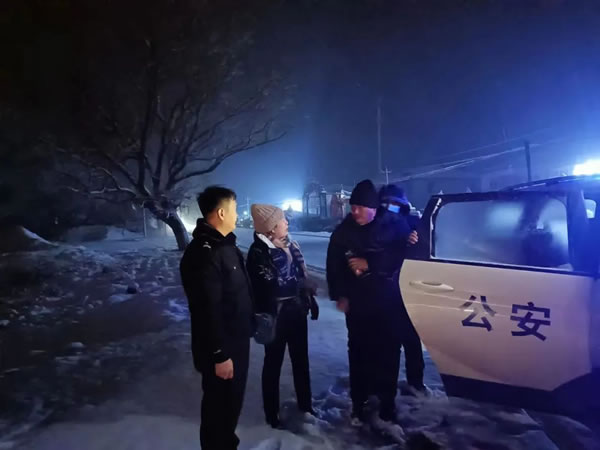 3月14日晚9時許,天空飄著鵝毛般的大雪,安民派出所接到群眾報警稱:“在安民鄉安民村李家圍子屯,301國道東側,有一名頭戴黑色帽子,身穿黑色棉服和黑色褲子的男子,不知道什么原因躺在路邊”,接到報警后,民警楊忠孝立即帶領輔警張興宇趕赴報警現場,經過現場了解,發現該人為智障人員,無法準確有效地表達個人信息,且身上也沒有任何能證明身份信息的證件,具體住址也說不清楚。只能斷斷續續的表達自己和母親的名字,但無法提供聯系方式,經過民警再三溝通,他說是在廣場上扭秧歌,扭完后想回家,在經過一個天橋后,迷失了方向,就走到這來了。民警楊忠孝分析,該人應該是從市區來的,因為他提到天橋,安民所轄區最近的城市就是安達市,他應該是從安達市方向來的,將群眾領到安民派出所后,輔警張興宇為他買了熱乎的食物并安撫其情緒,通過工作得知該人叫郭某東是安達市朝陽區居民,楊忠孝立即與安達市朝陽派出所取得聯系,安達市朝陽派出所工作人員表示,郭某東的父母已向派出所報警,說孩子已走失一下午了,父母很著急,我們這邊也出動警力正在幫忙尋找,民警楊忠孝與他的父母取得聯系后,告知人已安全找到,看著天空飄下的大雪,楊忠孝決定和張興宇用警車把郭某東安全送回家里,以免發生其他意外。