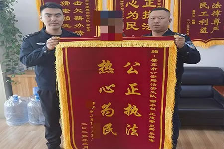2022年7月至10月,黑龍江省某建設工程有限公司在承建肇東市某小區工程期間,以工程未完工為由拖欠13名農民工工資共計19萬元,工人向該公司討薪未果。肇東市政府及公安局主要領導對此高度重視,指派治安大隊聯合相關部門成立專案組,全力開展攻堅工作。專案組工作人員主動作為,多次進行走訪調查,并將雙方召集到一起進行商討解決。通過工作人員不懈努力,耐心細致的宣傳法律政策,講明利害關系和法律后果。最終,該建設工程有限公司將拖欠的13名農民工工資19萬元全部支付。3月23日,農民工代表將一面寫有“公正執法、熱心為民”的錦旗送到公安機關,以表達幫助農民工討回拖欠工資的感激之情。
