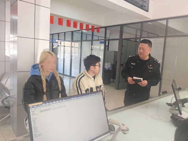 3月27日,肇東市公安局出入境管理大廳迎來了一對神情焦急的夫婦尋求幫助,肇東居民姜先生攜外籍妻子趕到出入境接待大廳咨詢辦理外國人簽證的相關(guān)問題,工作人員詢問得知,姜先生與妻子卡琳娜因工作原因長期居住在浙江省金華市,由于妻子卡琳娜簽證問題夫妻二人輾轉(zhuǎn)千里回肇東辦理簽證,民警秉承“群眾利益無小事、為民服務(wù)無終點”的理念,在審核基礎(chǔ)資料后,協(xié)助兩人僅用半小時就成功辦理了簽證,解決了群眾的實際困難,提高了群眾的獲得感、幸福感、安全感。
